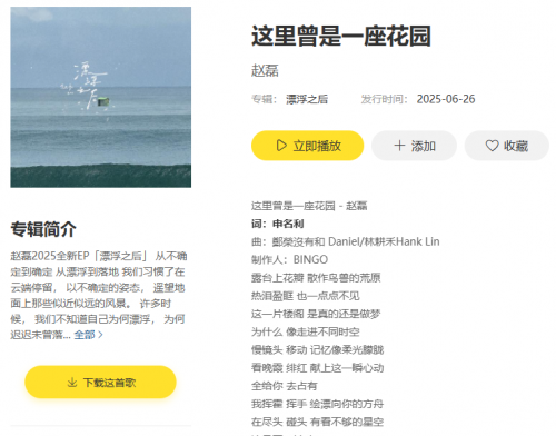 在与WATKOI的对话中,赵磊分享了EP制作背后的故事。他提到,这三首歌都是围绕“漂浮之后”的概念展开的。《岛屿序曲》轻快而充满对未来的期盼,《四季皆宜》则表达了对按照自己内心做出决定后迎来美好风景的坚信,而《这里曾是一座花园》则是一首情绪委婉的歌,它象征着赵磊曾经拥有的光鲜亮丽的人生,以及面对荒芜后重建新花园的决心。每一首歌,都是赵磊内心世界的真实写照,也是他想要传递给听众的情感与思考。